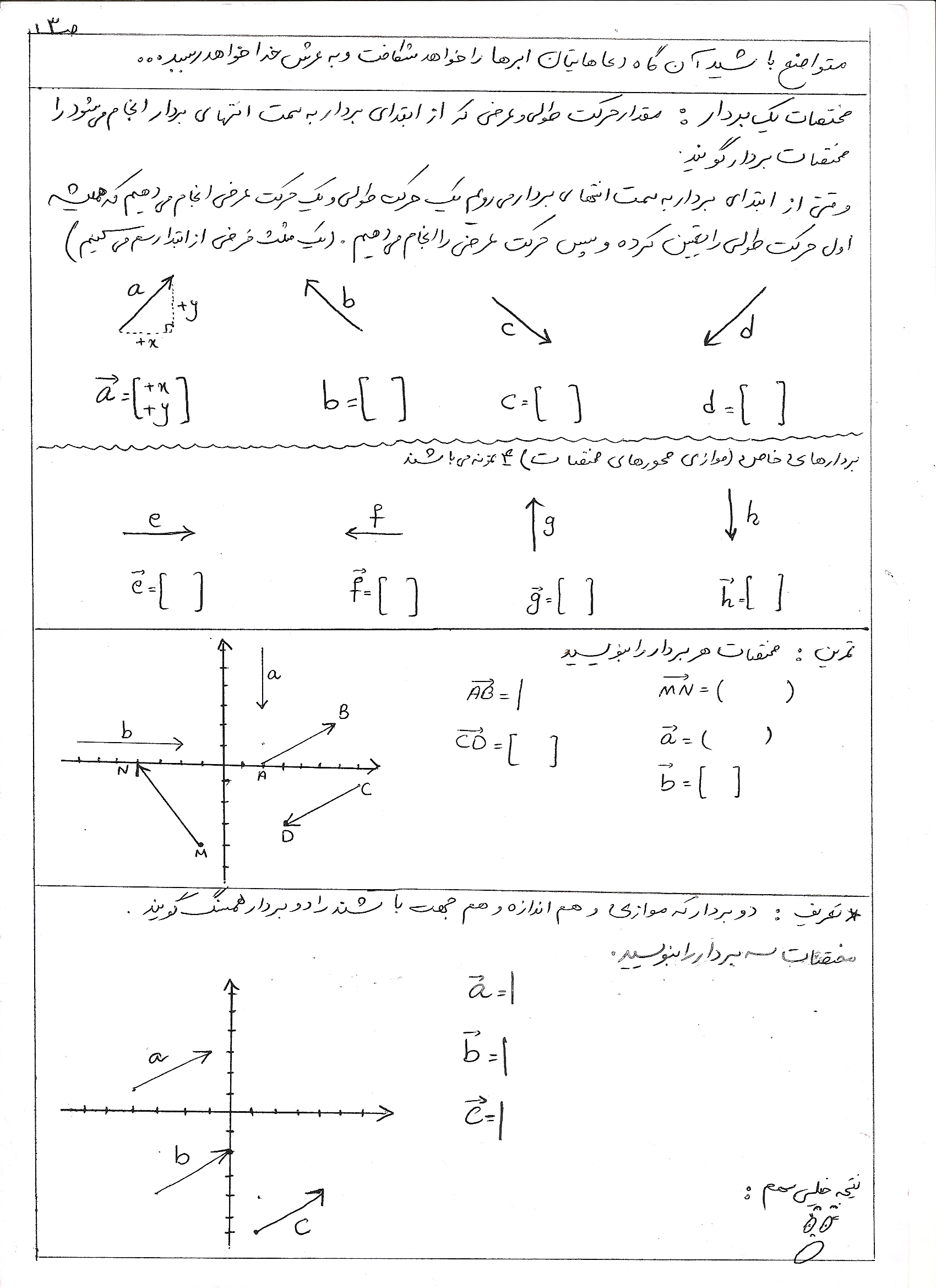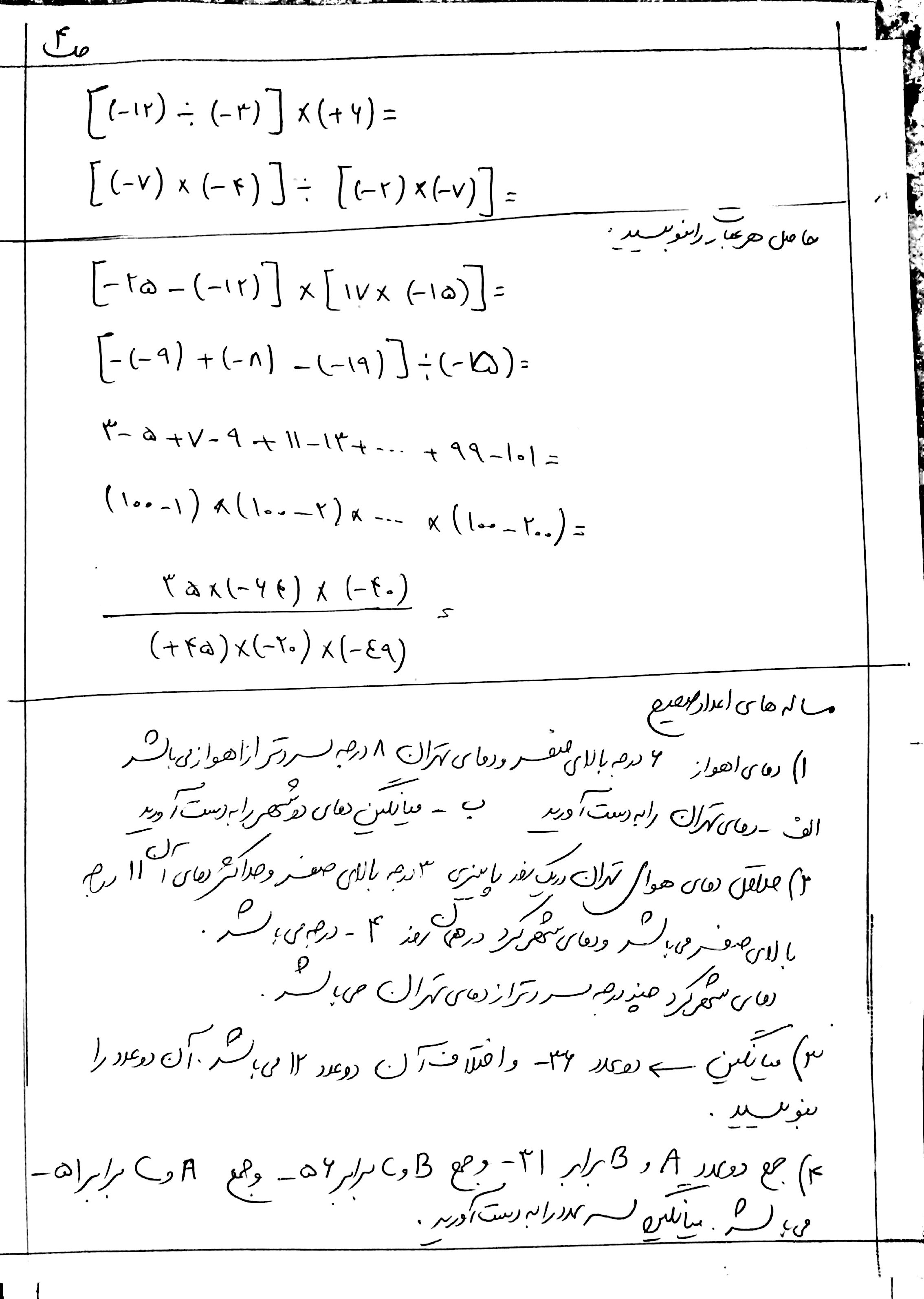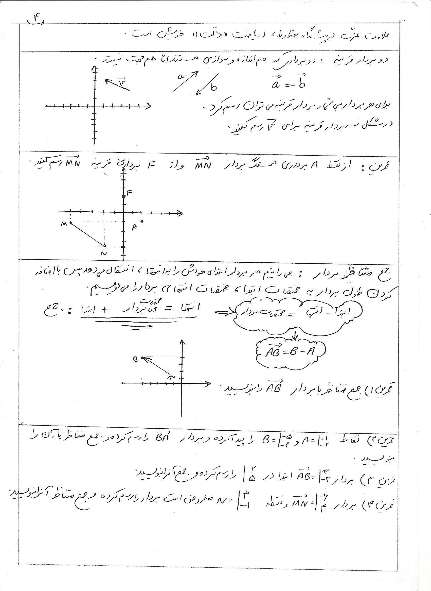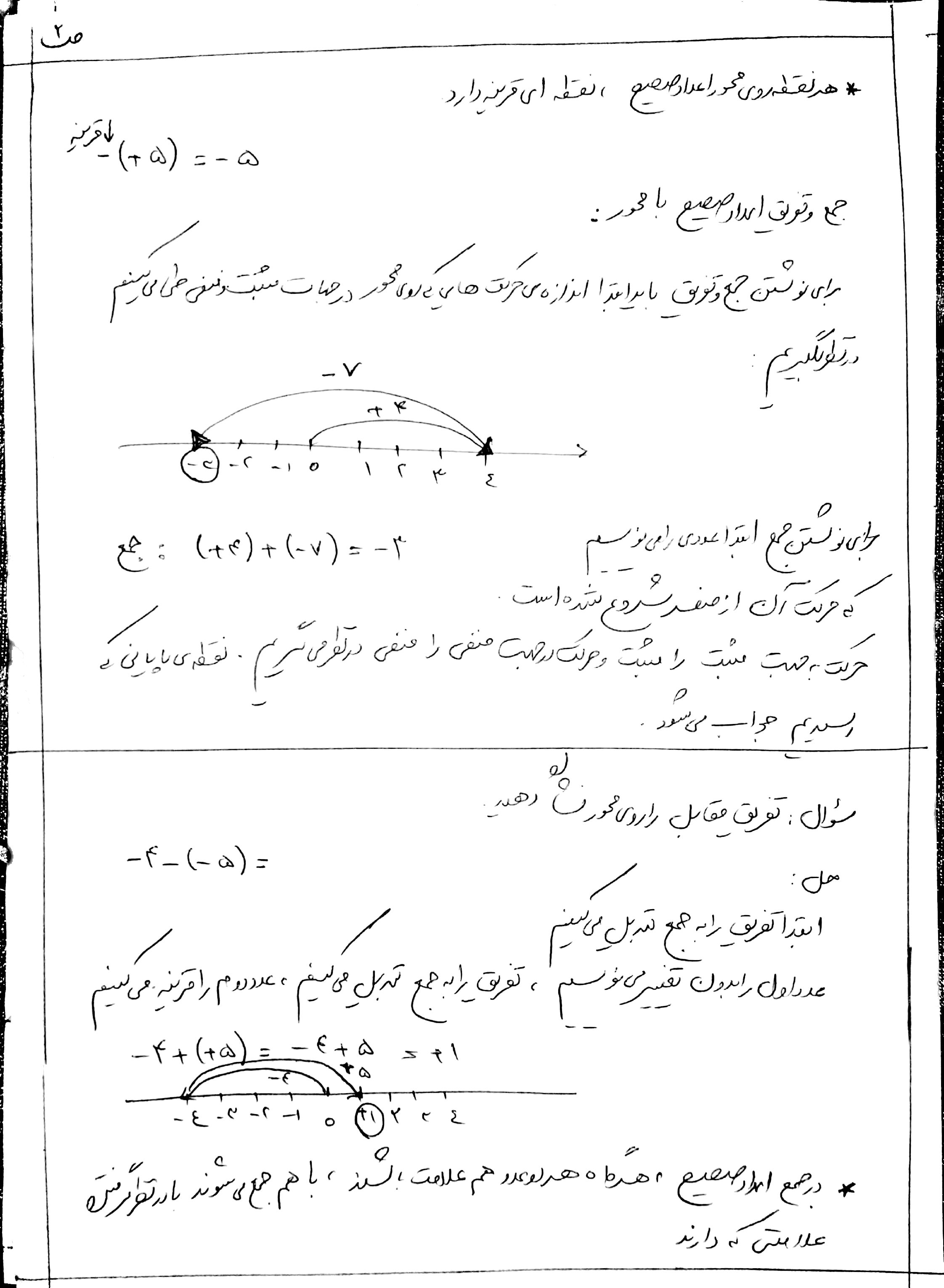 لطفا فقط سوالات را در دفتر ریاضی بنویسید . به علت تدریس نشدن کل فصل ، فقط نسبت به حل سوال 4 که جمع و تفریق روی محور می باشد اقدام نمایید .