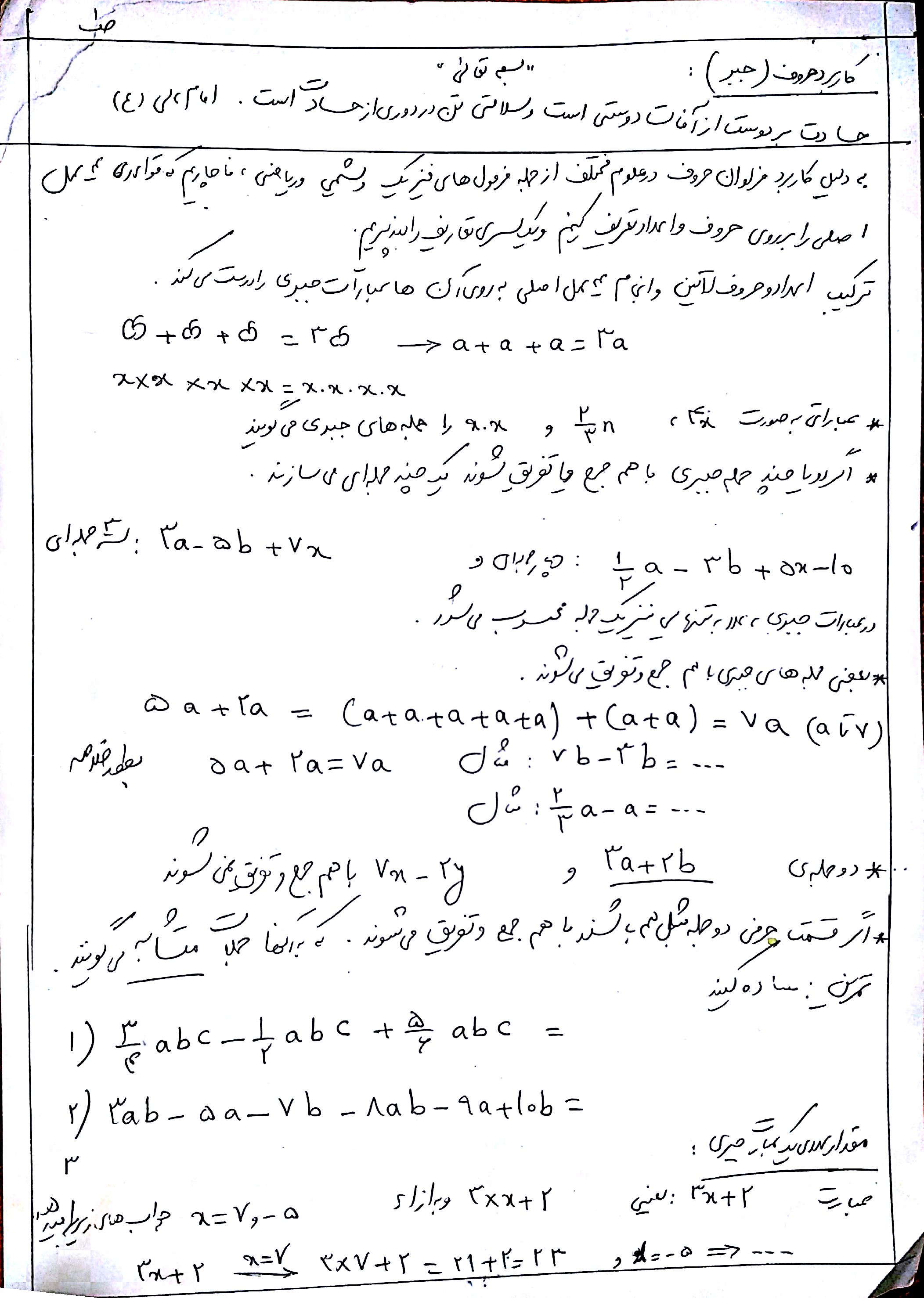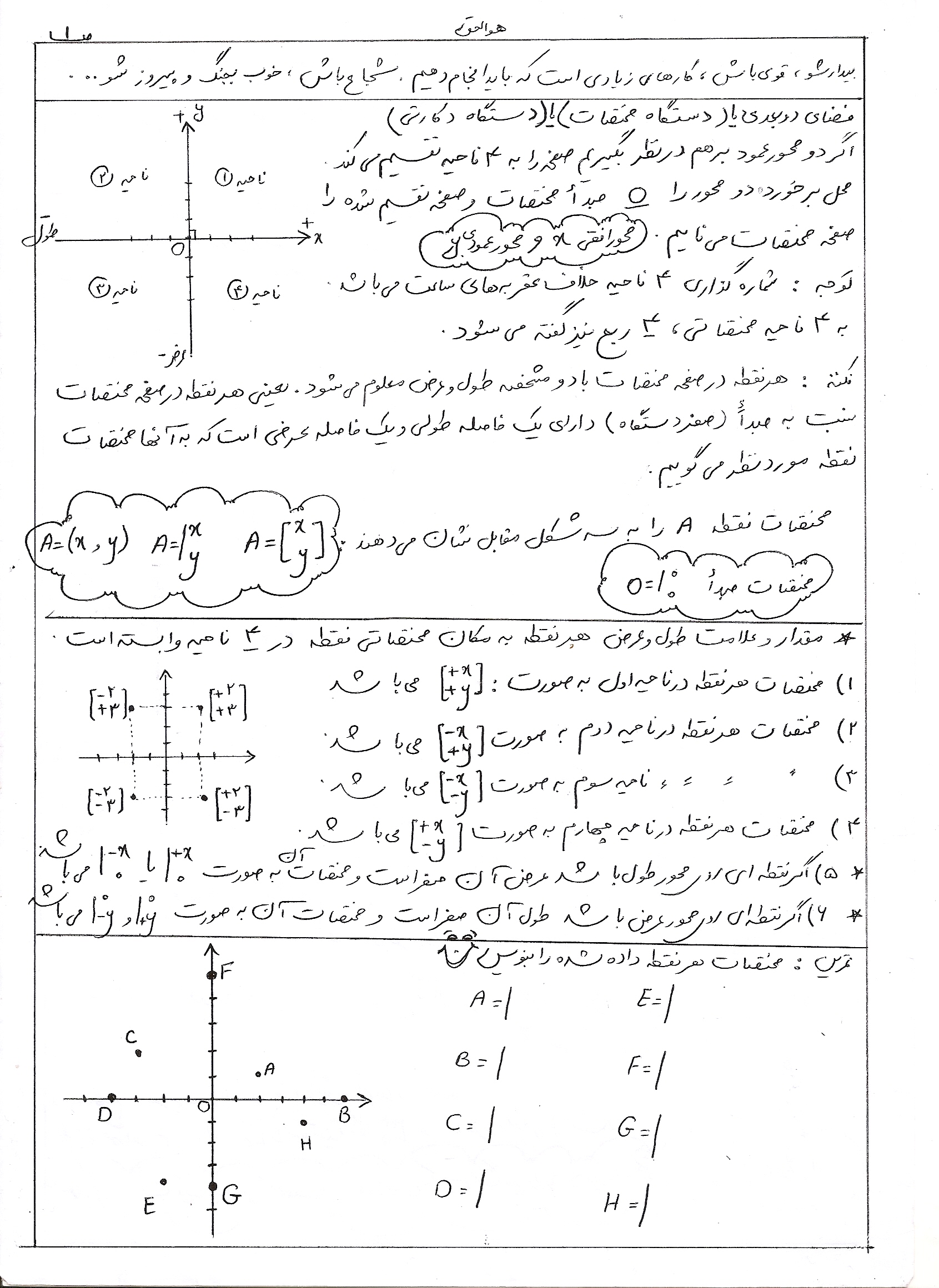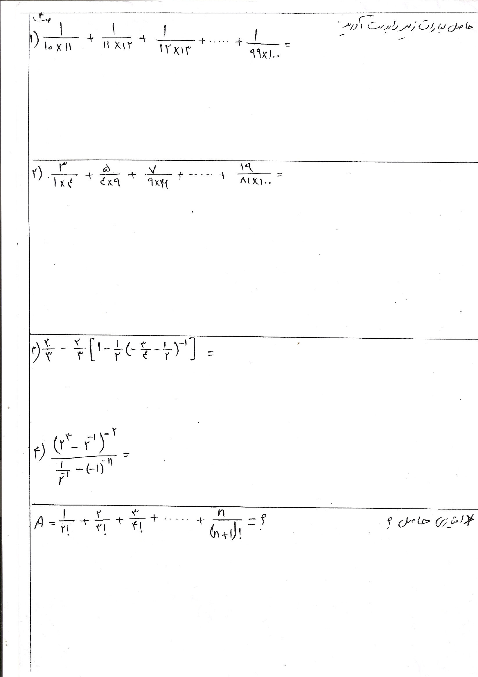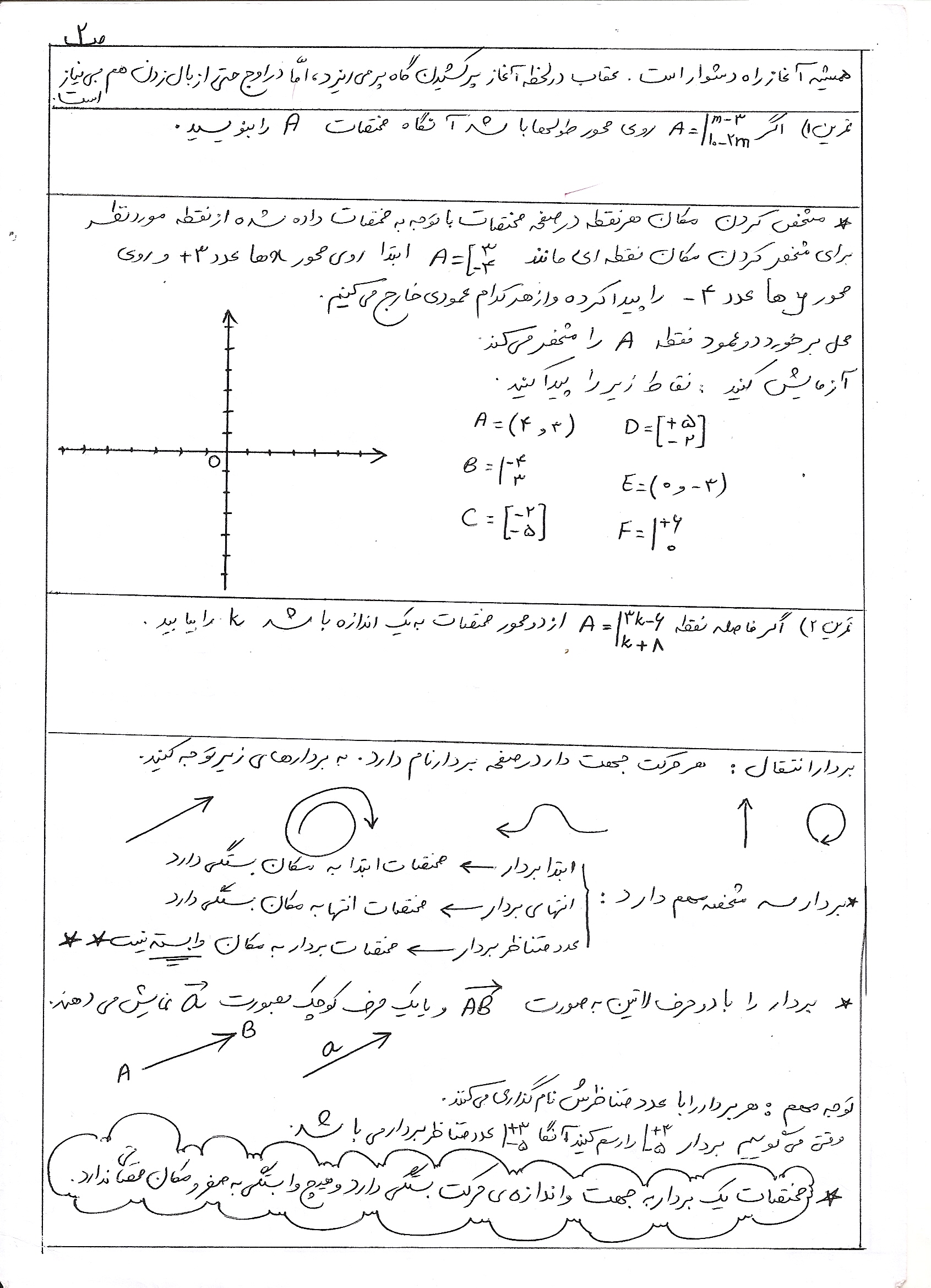 لطفا فقط سوالات را در دفتر ریاضی بنویسید . به علت تدریس نشدن کل فصل ، فقط نسبت به حل سوال 4 که جمع و تفریق روی محور می باشد اقدام نمایید .