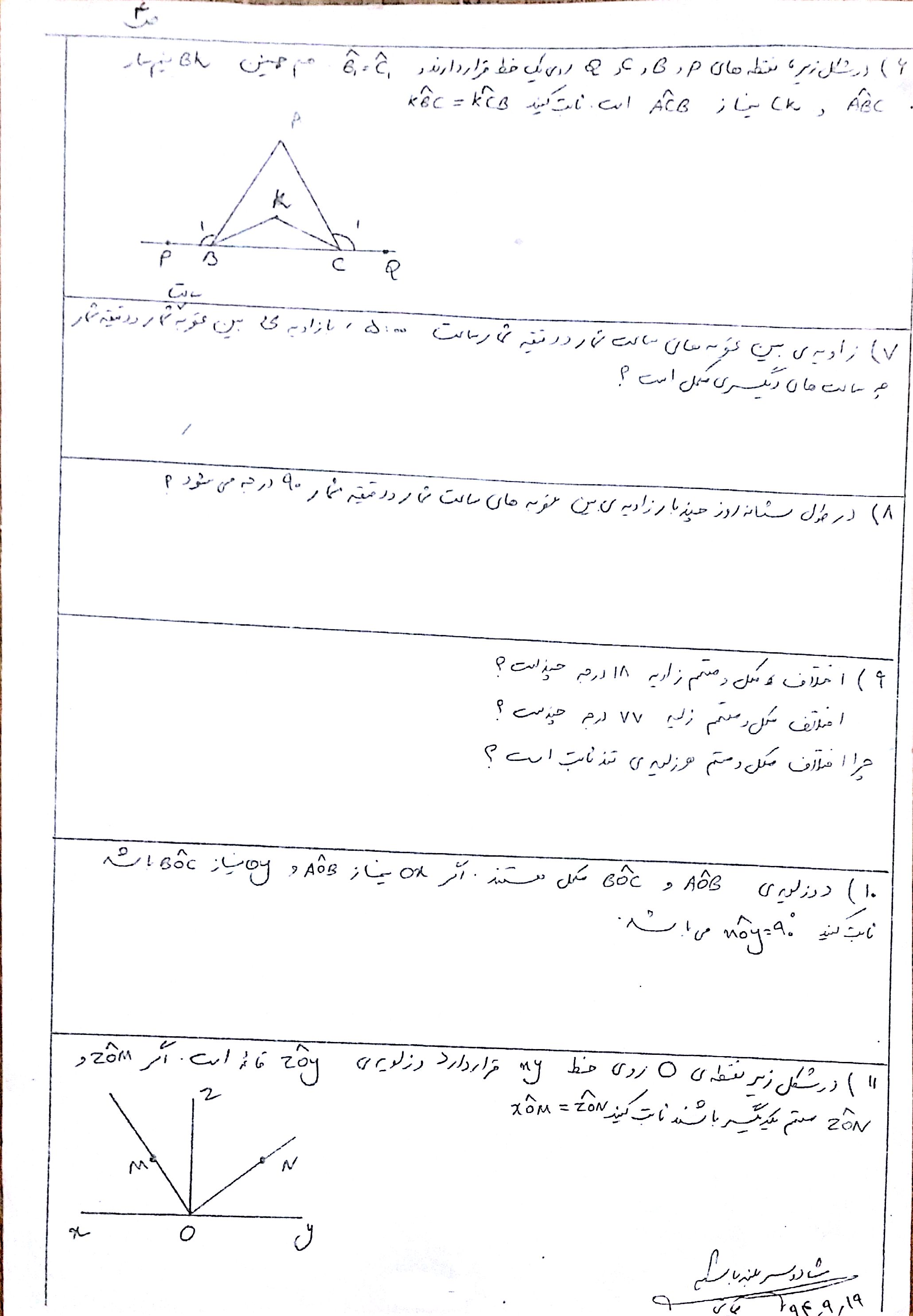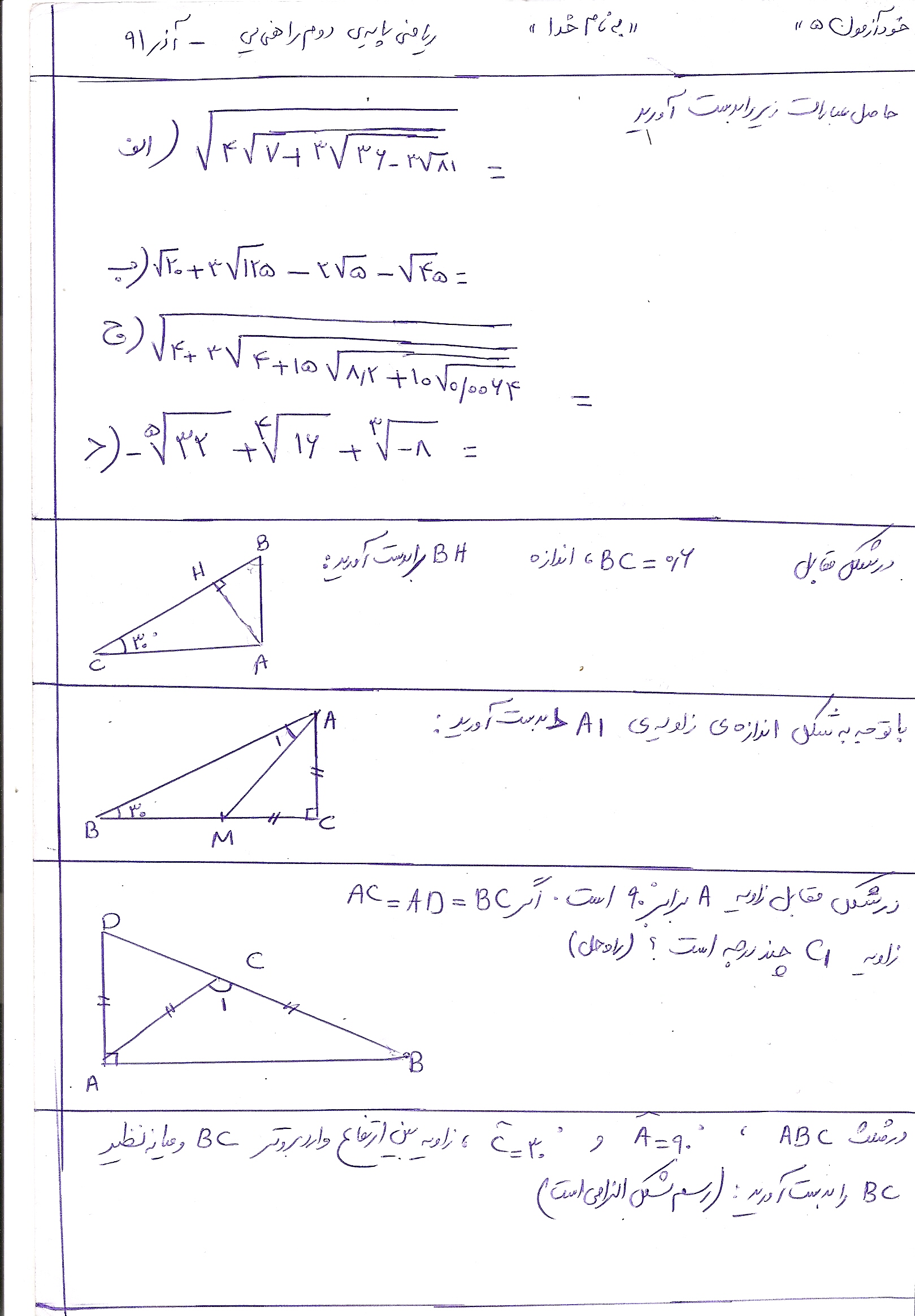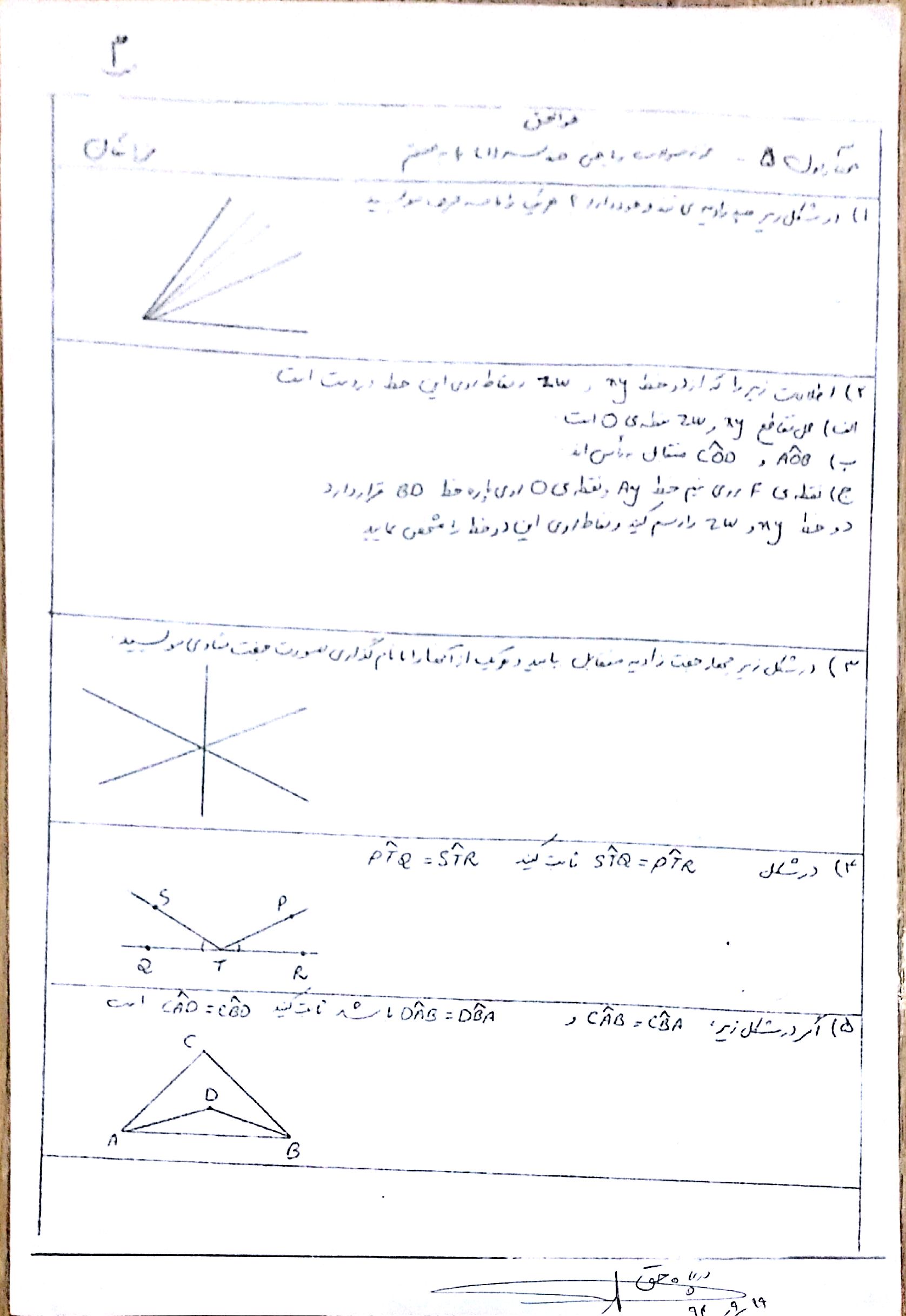 نمونه سوال نوبت اول پايه دوم راهنمايي