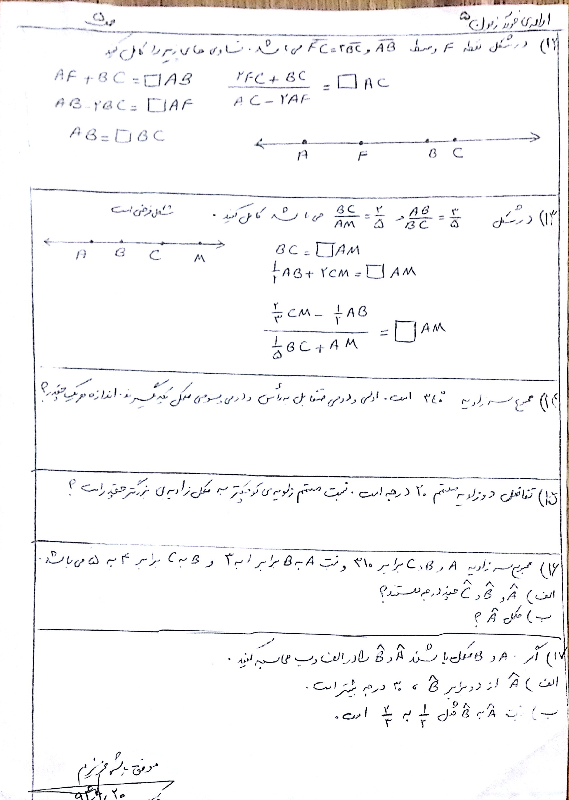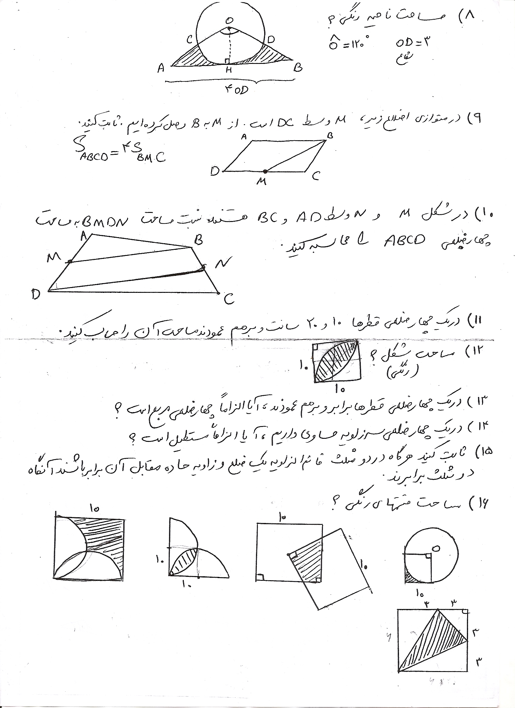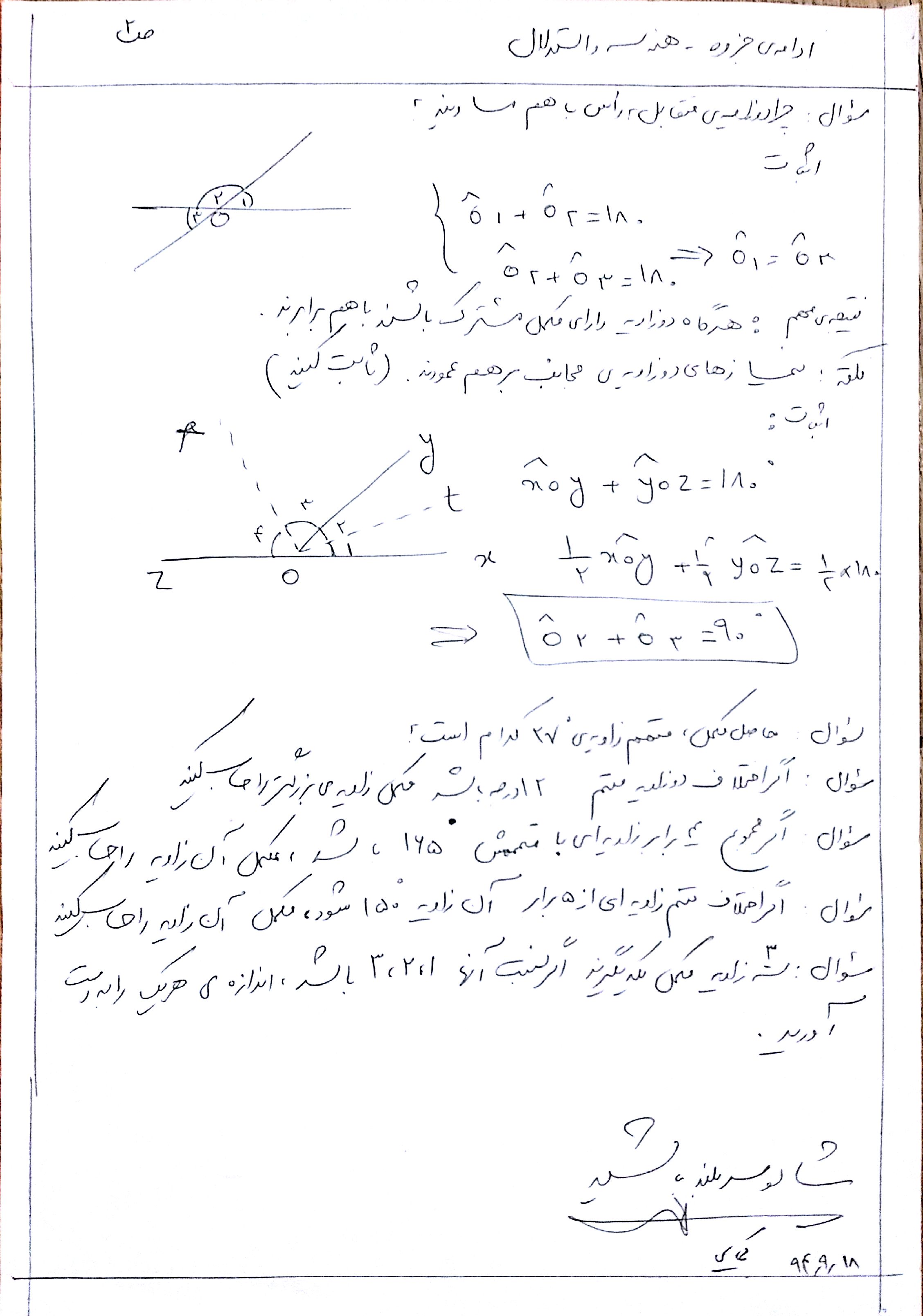 نمونه سوال نوبت اول پايه دوم راهنمايي