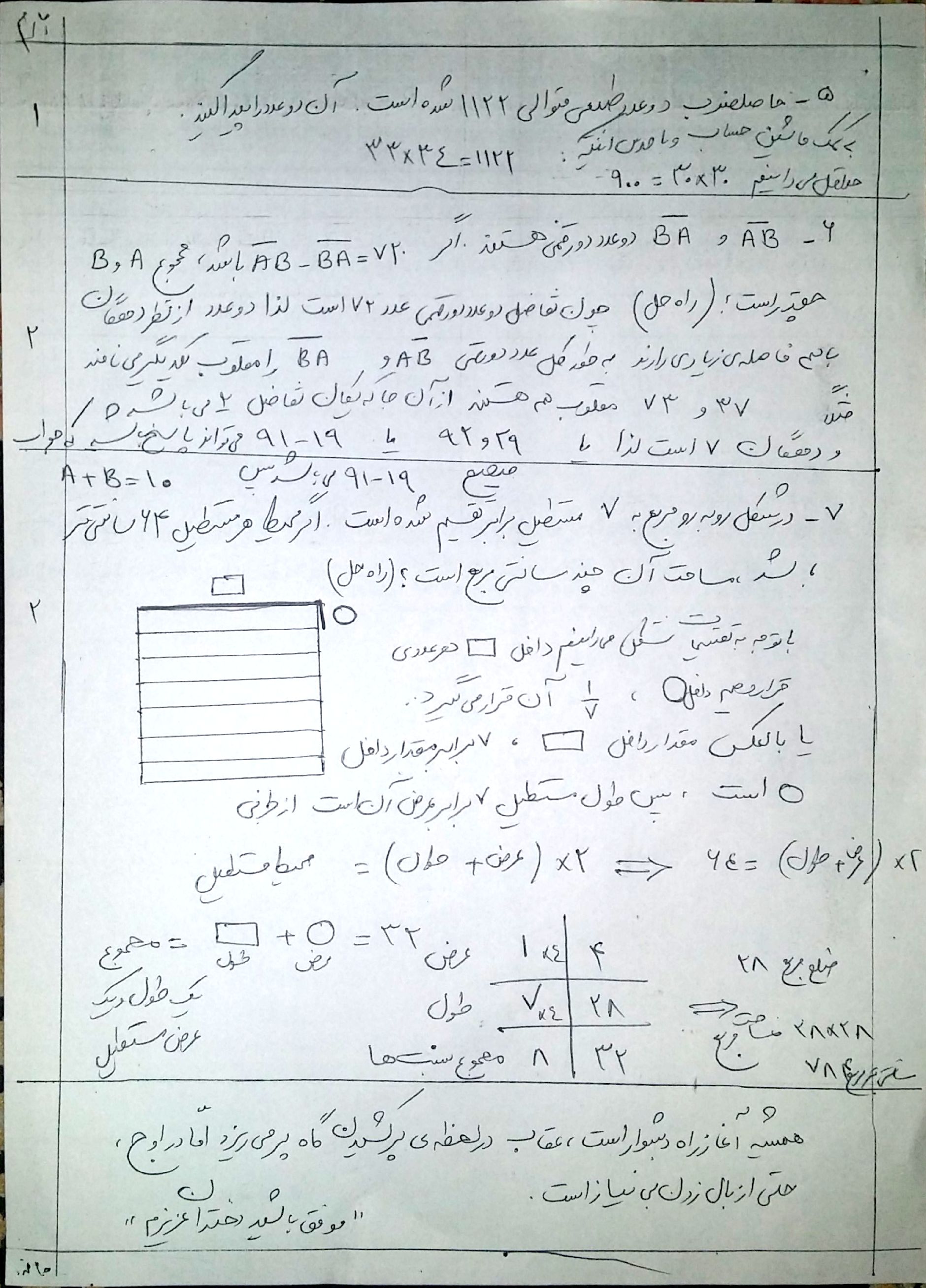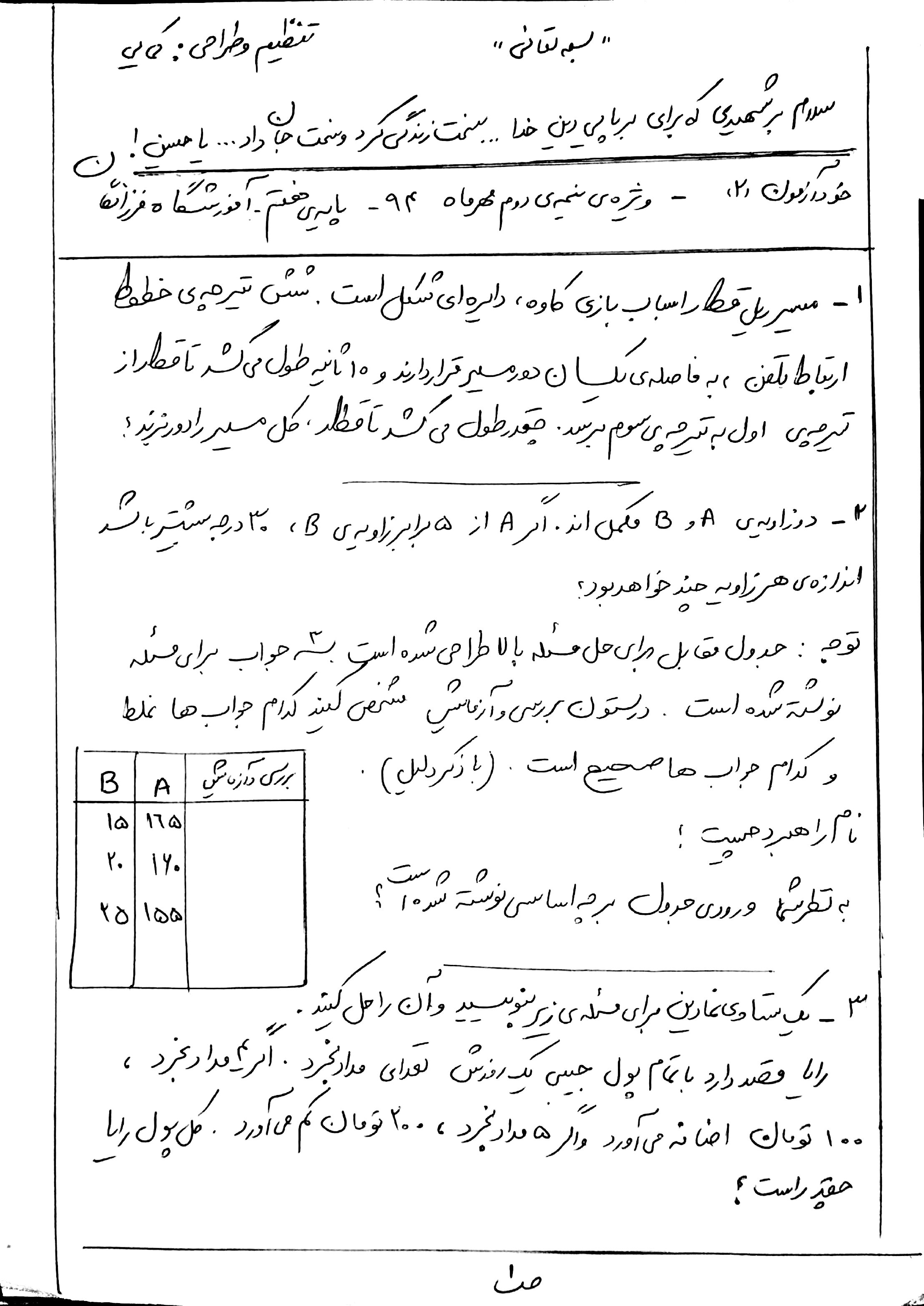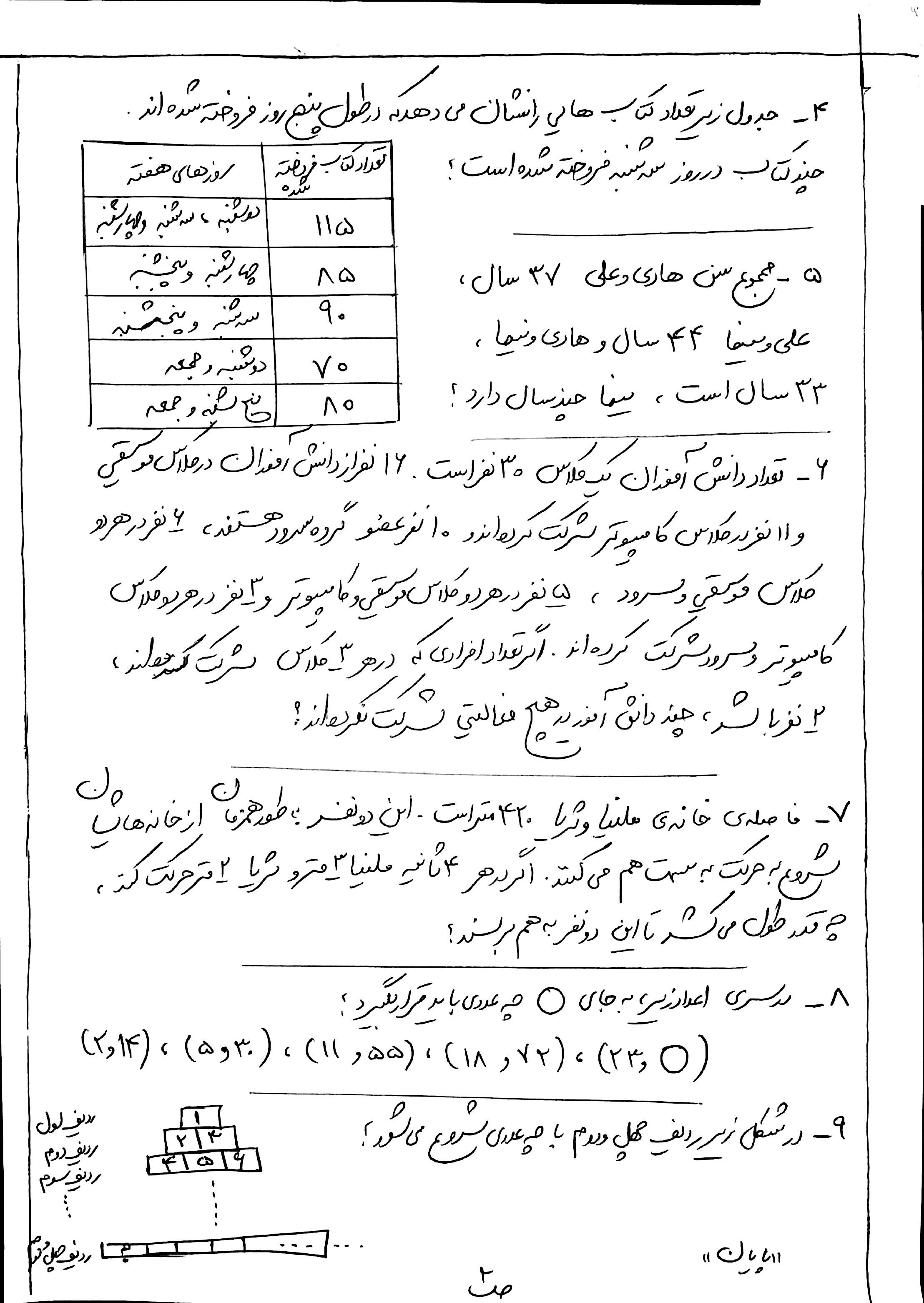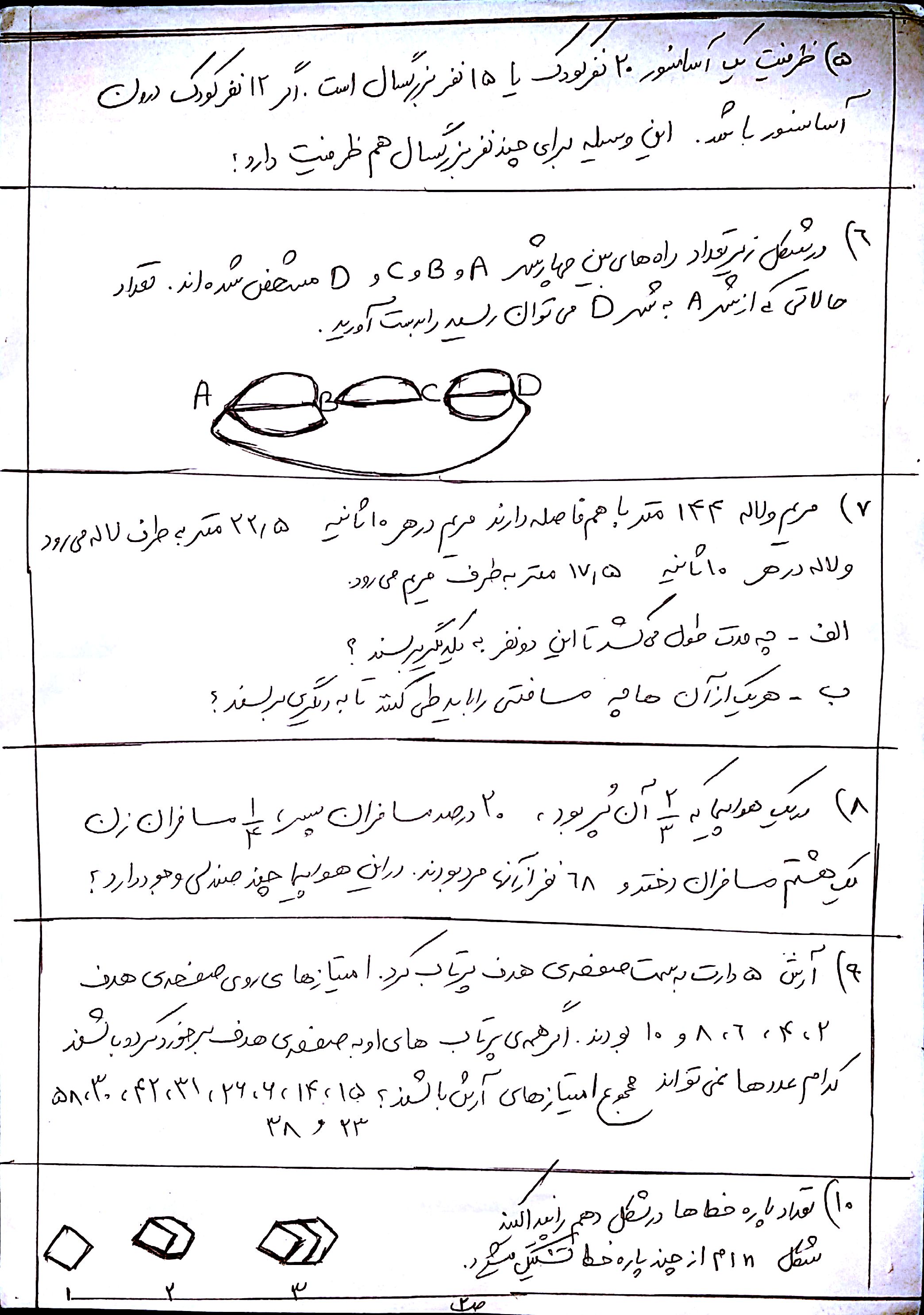 خودآزمون شماره ی 2 ( حل مسئله ویژه ی پایه ی هفتم )