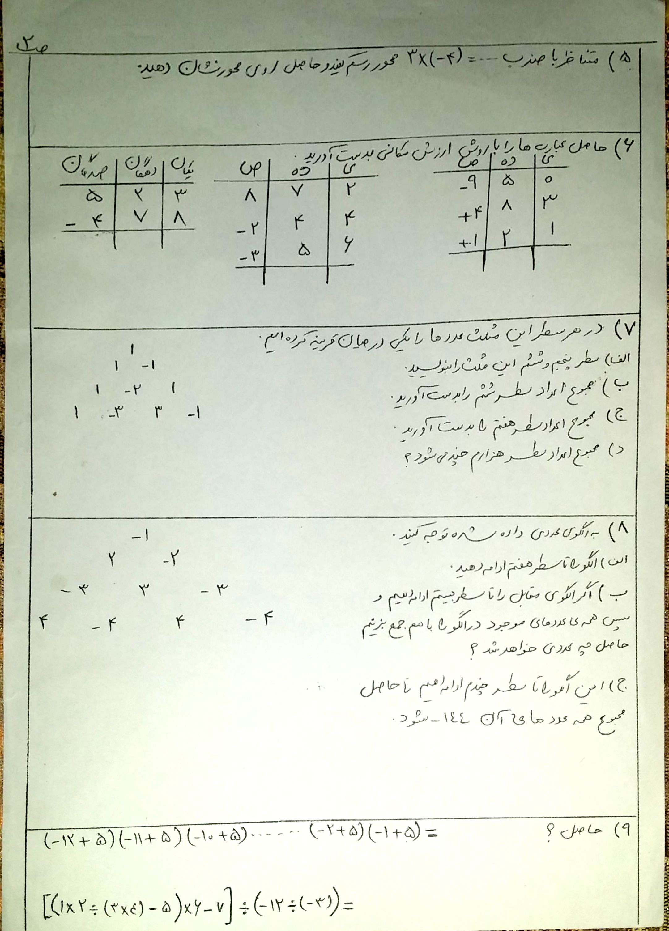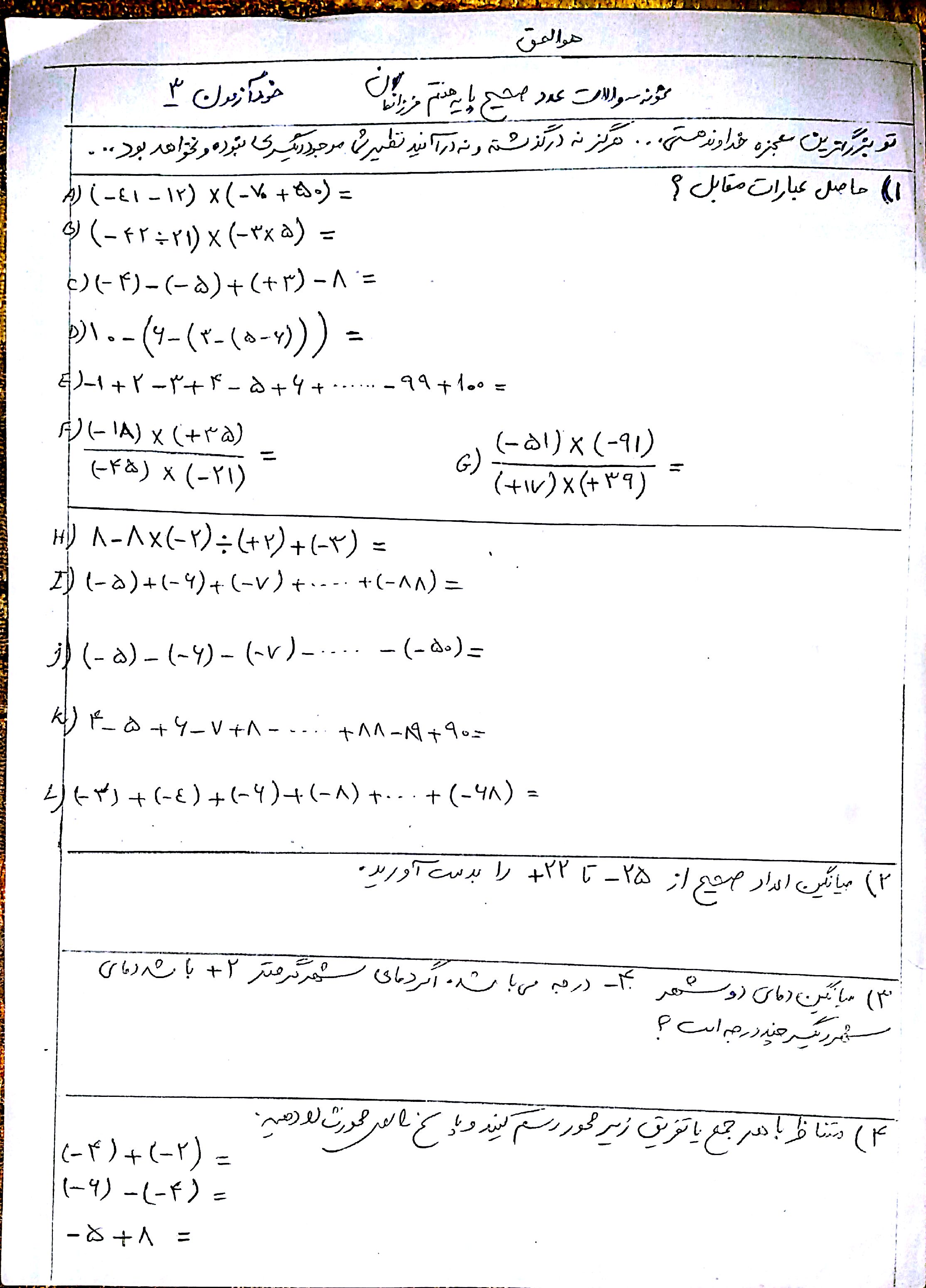 با توجه به اینکه مطالب پایه ای اعداد صحیح تدریس شده است لطفا نسبت به حل سوالات اقدام نمایید