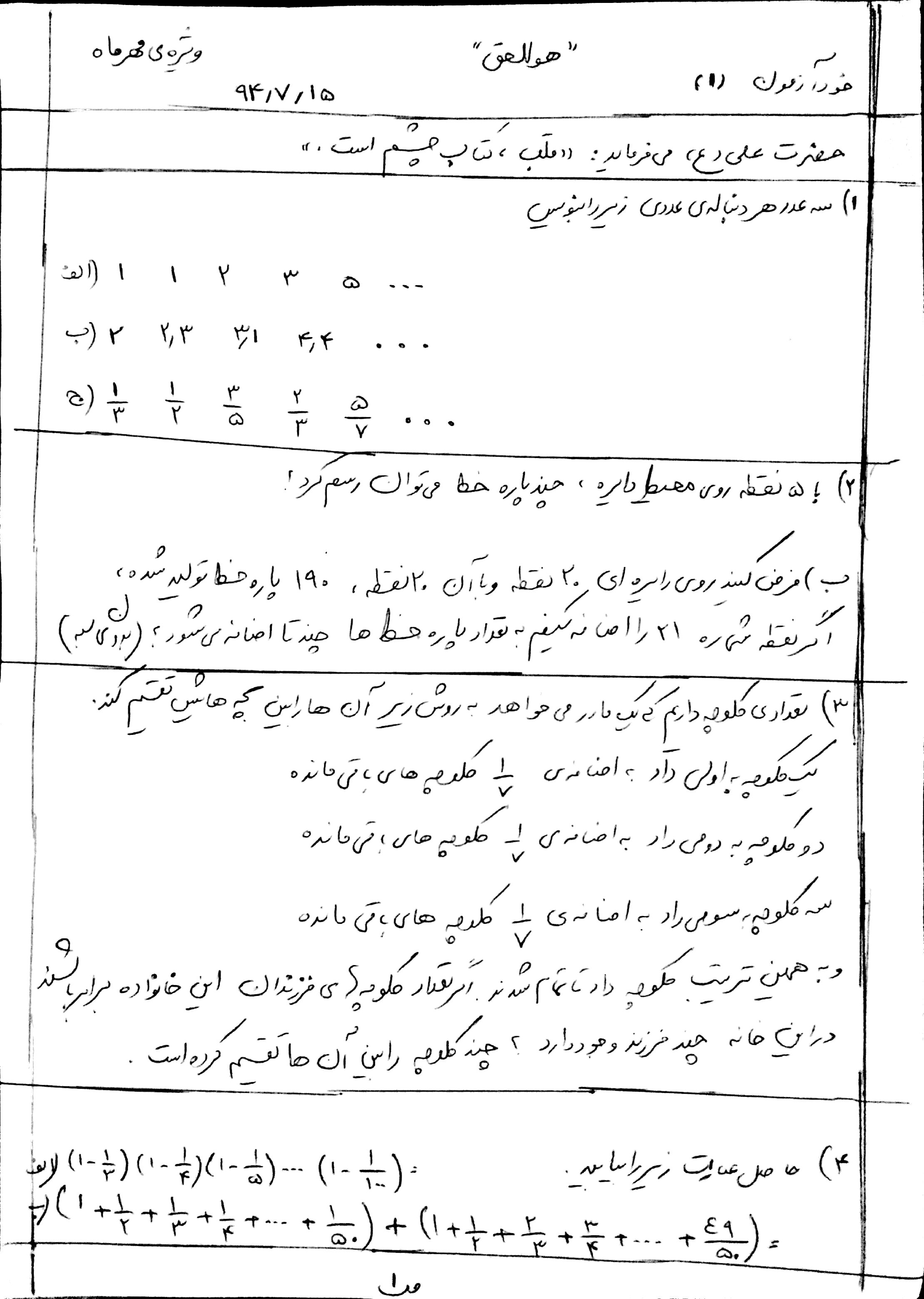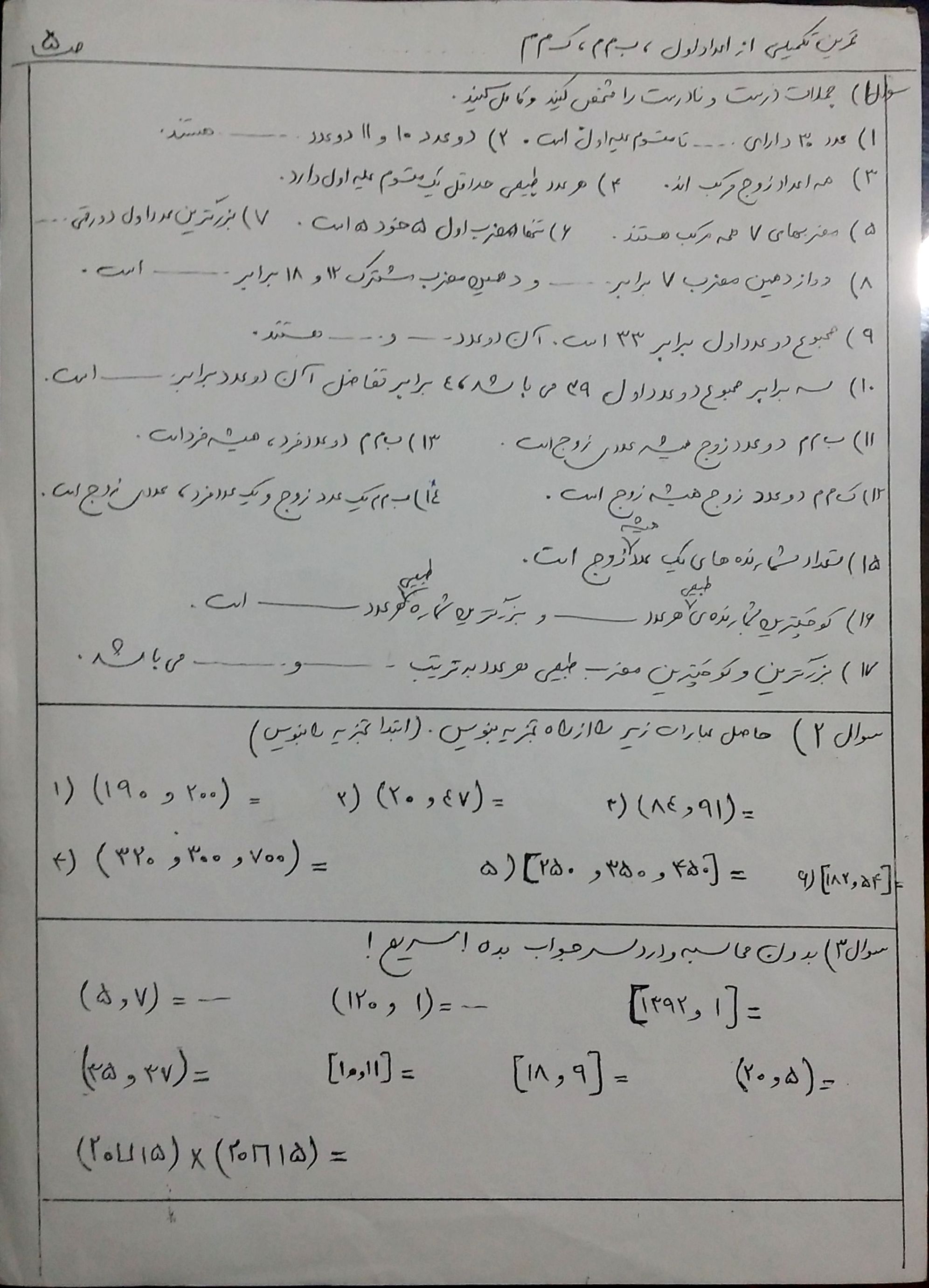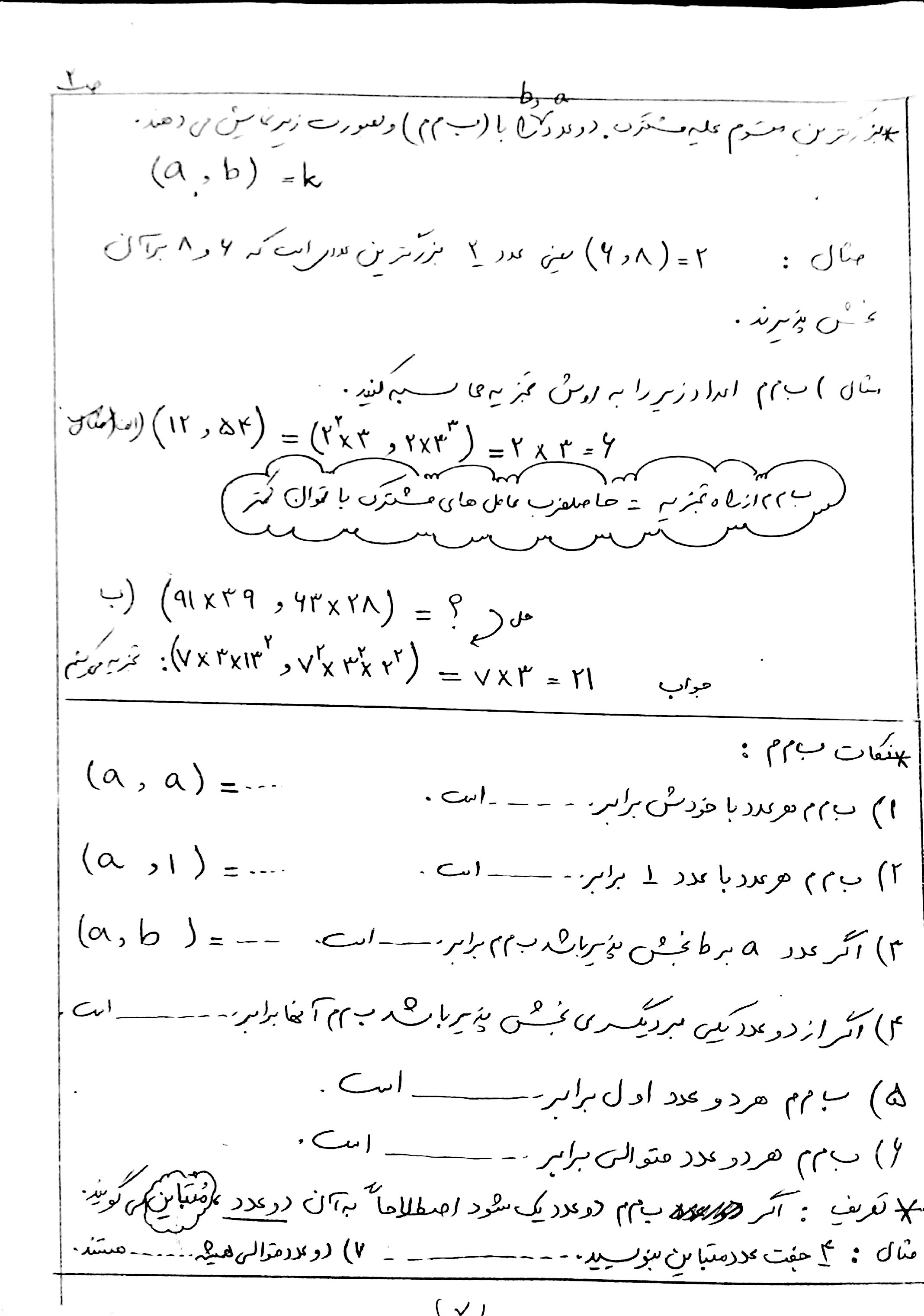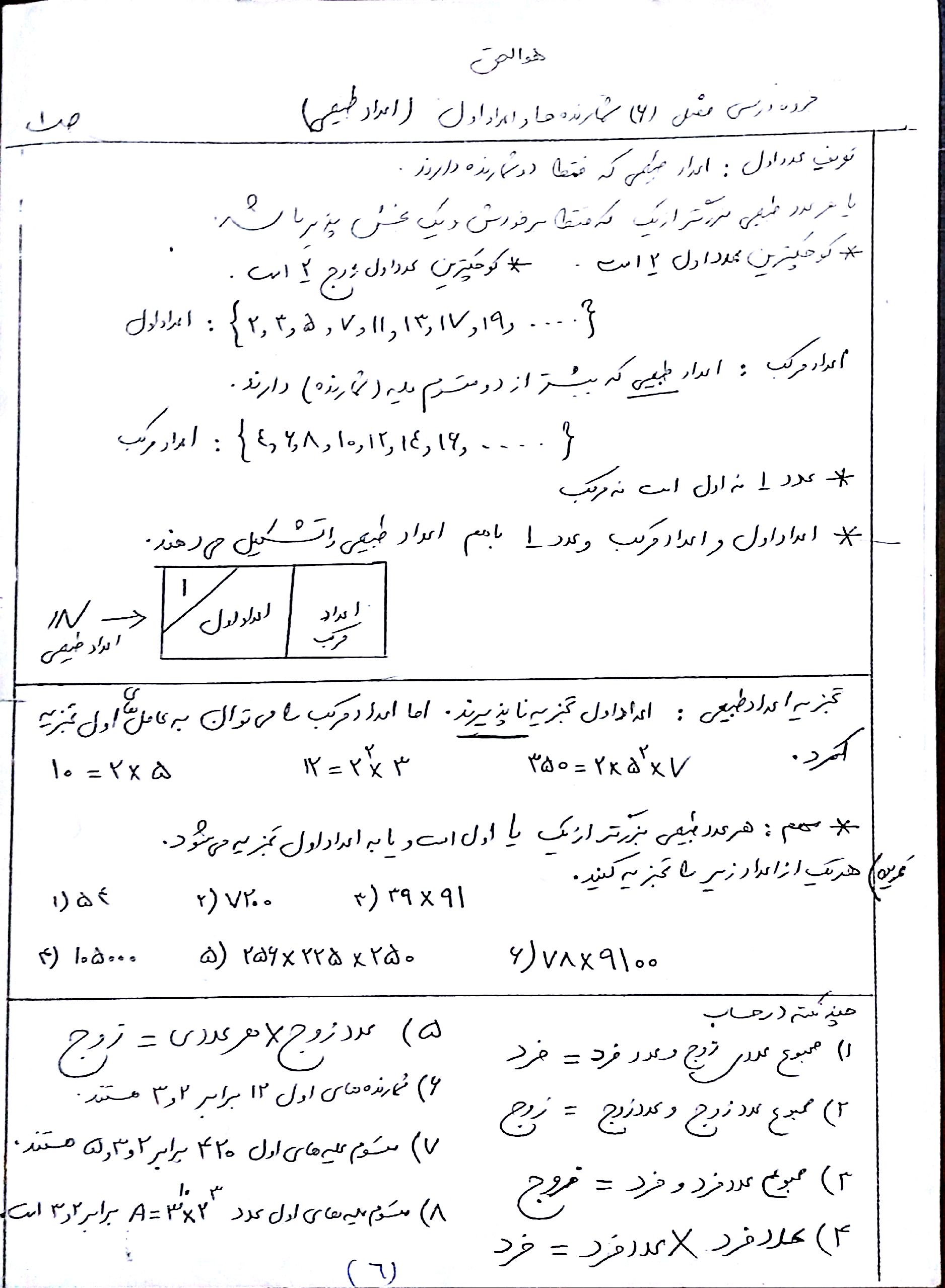 جزوه ی حساب و اعداد اول (ویژه ی پایه ی هفتم)
