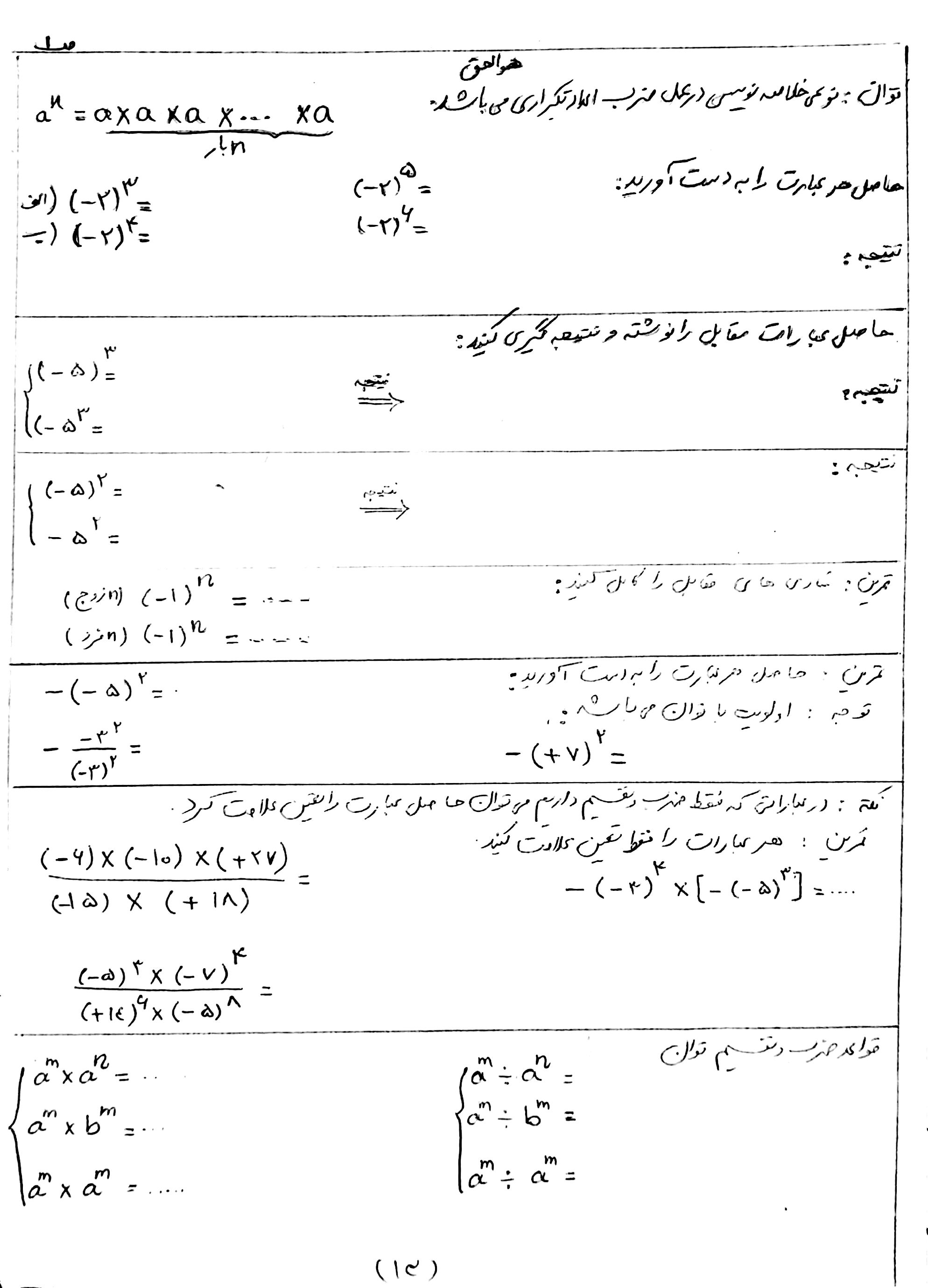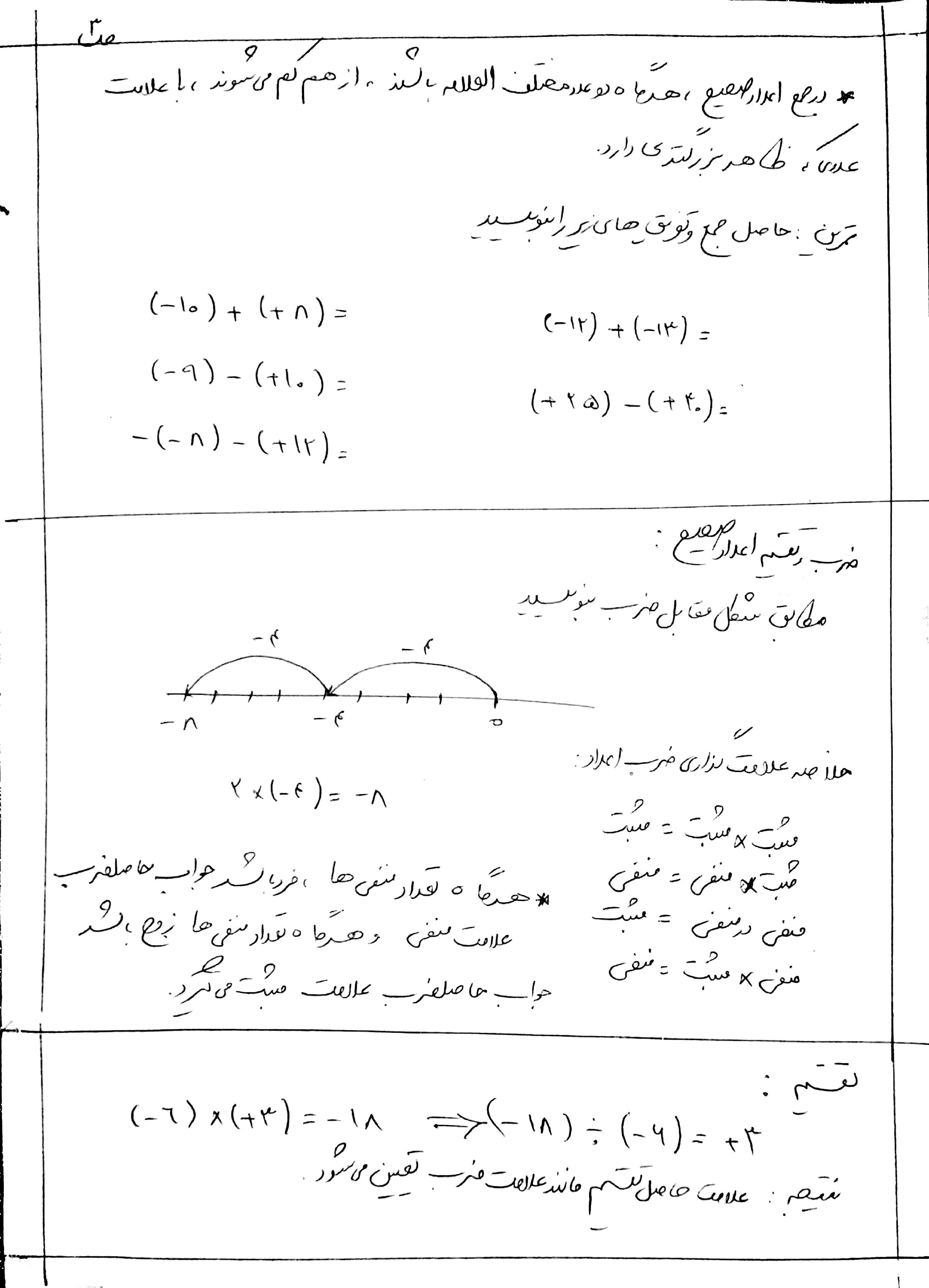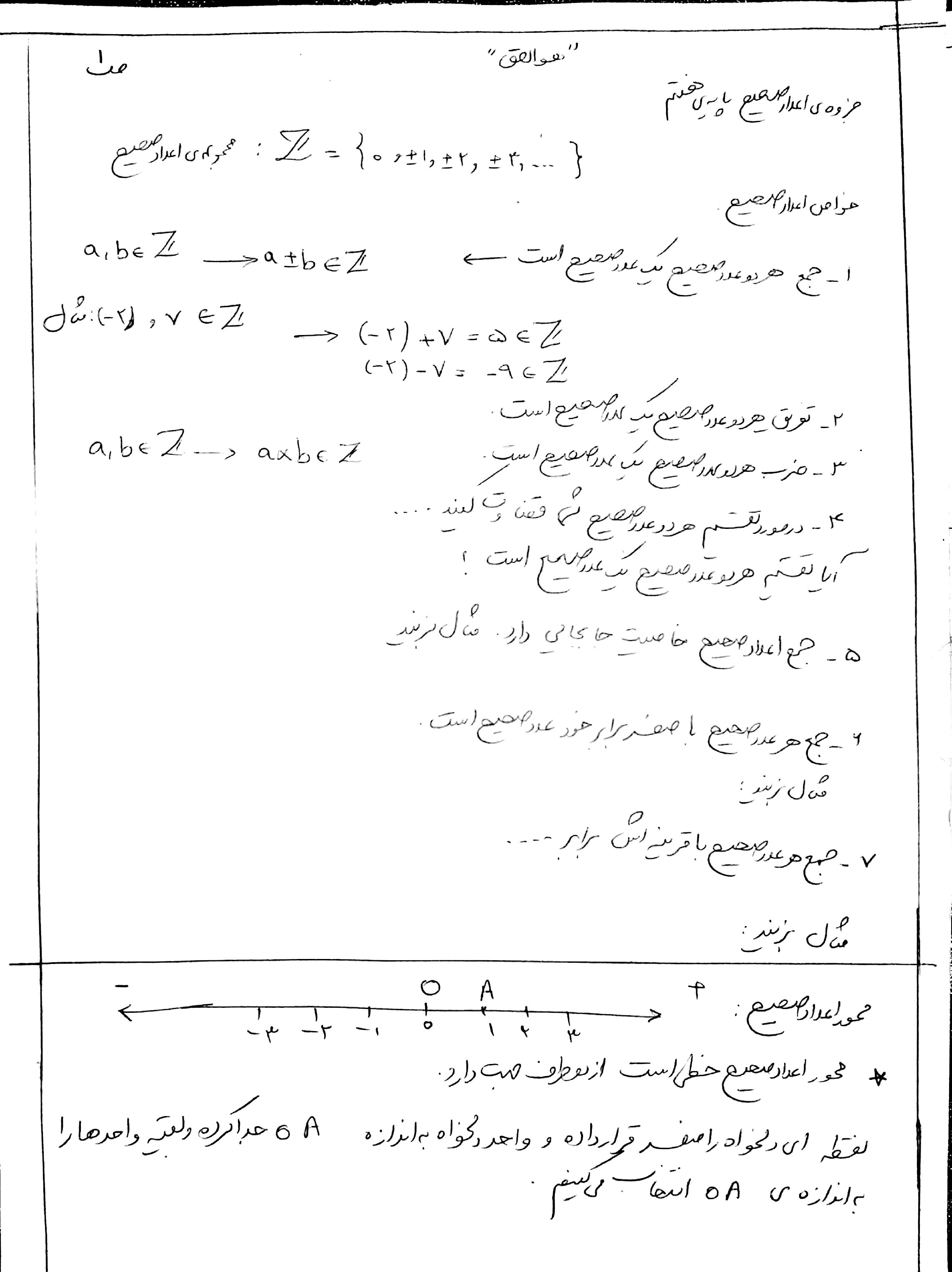 جزوه ی اعداد صحیح ویژه ی پایه ی هفتم